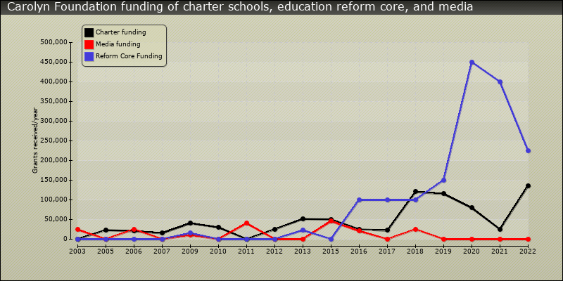 Database contains 89 grants from Carolyn Foundation worth $ 3,463,077