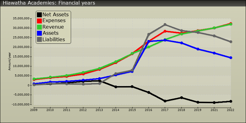 * All from IRS 990. Assets = line 21; Revenue = line 12; Expenses = line 17.