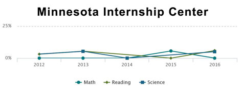 One Minneapolis charter school, the Minnesota Internship Center, enrolled 363 students in 2016, 86% of them Black / African American. That same year it had an average test score proficiency rating of 3.6%, about the level it has been stuck at for four years: