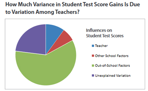 And make no mistake about it: The measures the Bush Foundation planned to use to judge the success or failure of its project were all about test scores. But what does the scholarly research on the factors that influence test scores say? A 2013 report by the Educational Testing Service found that teachers, on average, account for about 10% of differences on student test scores. As they reported, “...if the goal is to dramatically change patterns of U.S. student achievement, then identifying and removing low-performing teachers will not be nearly enough. "